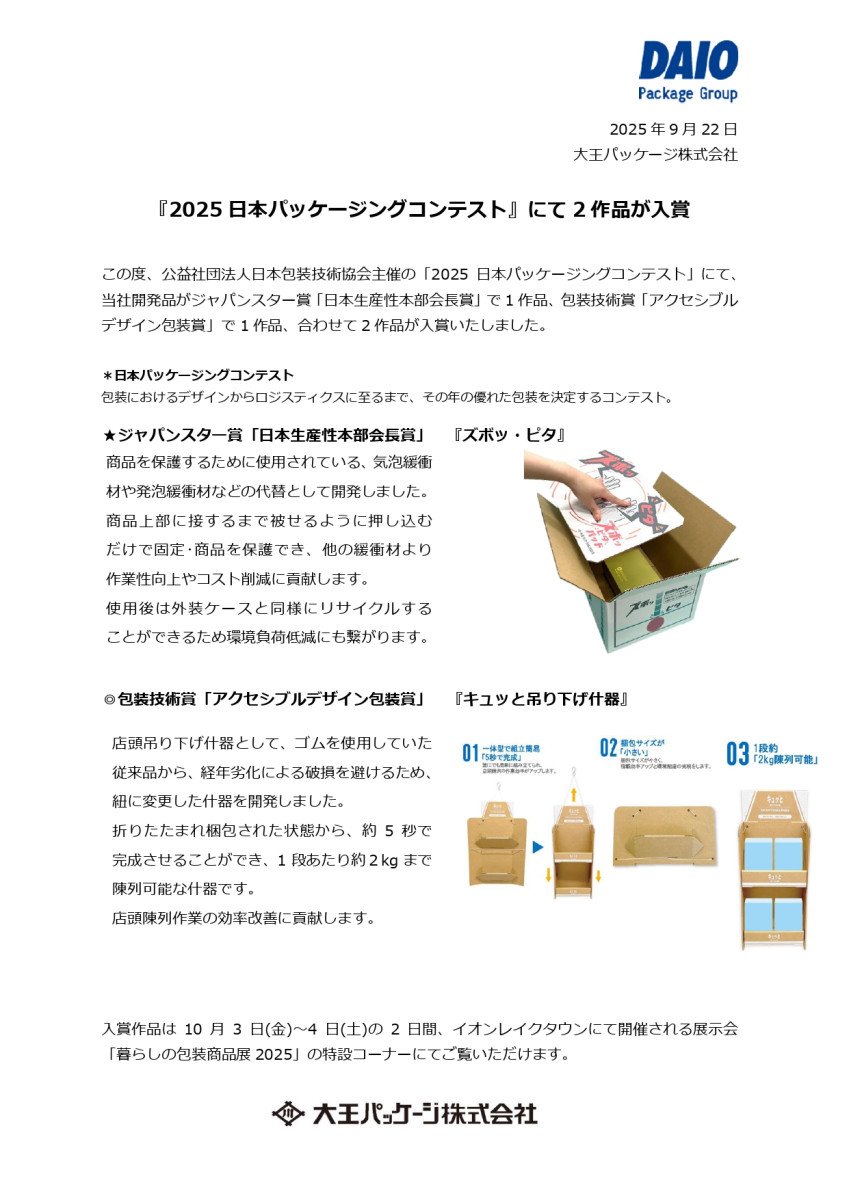 2025日本パッケージングコンテストにて2作品が入賞