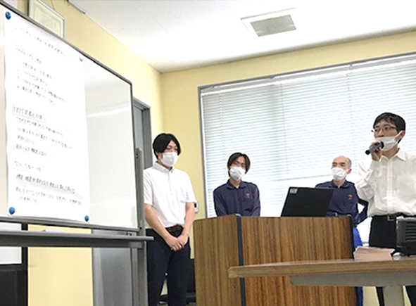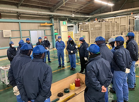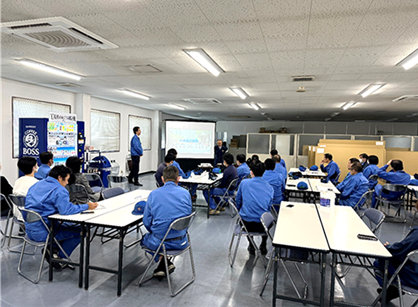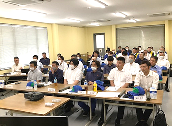 年に1回、休業災害ゼロを目指すための決起集会として安全大会を行っています。また災害につながる不安全設備、不安全作業を抽出し改善するリスクアセスメントの手法を用いて、社員の安全を守ることができるよう、職場の改善に取り組んでいます。