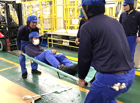 各工場が立地している場所に対応した防災訓練を定期的に実施しています。大規模災害発生を想定した緊急避難訓練では、人命の安全確保を最優先に、生産を維持または早期復旧できるよう、事業継続計画(BCP)を策定しています。